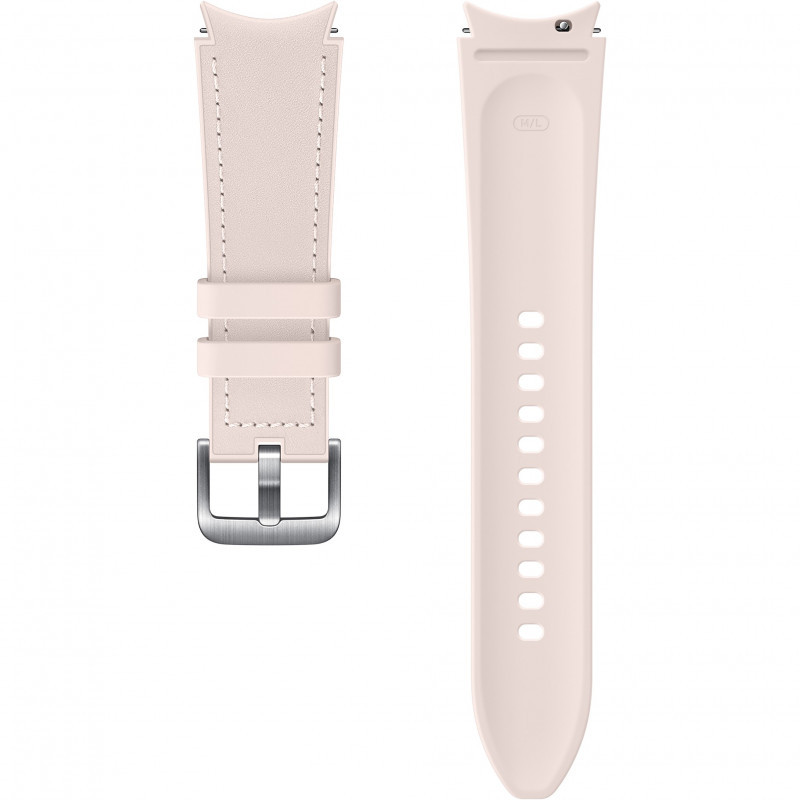 The Watch4/Watch5 Hybrid Leather Band maintains a firm and stable grip to your Galaxy Watch device. It is designed to closely attach the Galaxy Watch device to your wrist, improving the device's measuring capabilities.