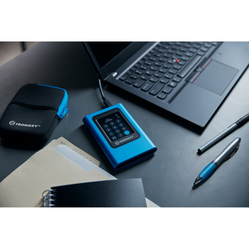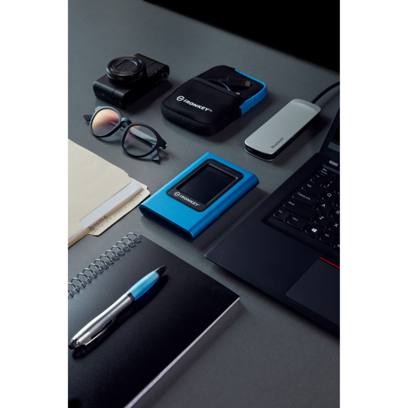 "Kingston Technology IronKey 3840GB Vault Privacy 80 XTS-AES 256-bit Encrypted External SSD. SSD capacity: 3.84 TB. USB connector: USB Type-C, USB version: 3.2 Gen 1 (3.1 Gen 1). Read speed: 230 MB/s, Write speed: 250 MB/s. Password protection. Product colour: Blue"\n"Kingston IronKey Vault Privacy 80 External SSD is Kingston’s first innovative OS-independent hardware-encrypted external SSD with touch-screen for data protection. VP80ES safeguards against Brute Force attacks and BadUSB with digitally-signed firmware. Brute Force attack protection crypto-erases the drive if the Admin and User passwords are entered incorrectly 15 times* in a row by default. The drive is FIPS 197 certified with XTS-AES 256-bit encryption using a Common Criteria EAL5+ (CC EAL5+) certified secure microprocessor, and is TAA compliant.
