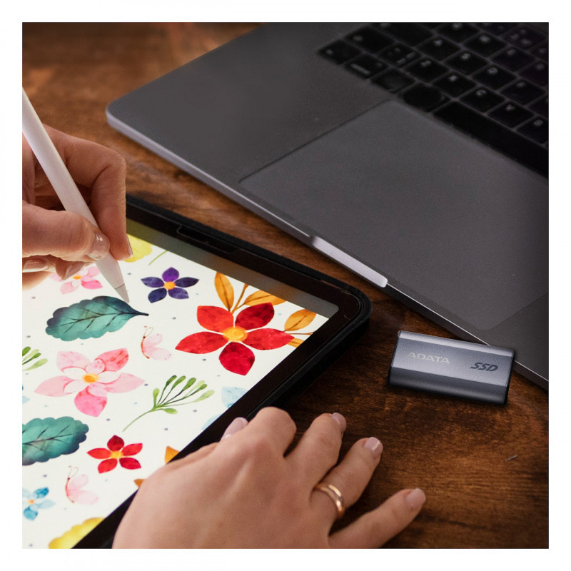 "ADATA SC750. SSD capacity: 2 TB. USB connector: USB Type-C, USB version: 3.2 Gen 2 (3.1 Gen 2). Read speed: 1050 MB/s, Write speed: 1000 MB/s. Data transfer rate: 10 Gbit/s. Product colour: Grey"\n"The SC750 supports USB 3.2 Gen2 with read/write speeds up to 1,050/1,000MB/s. It is compact and requires no additional data cables. Slide out its Type-C connector to get started transferring large files instantly for work or travel."