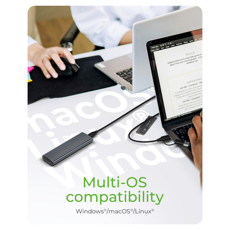 "ICY BOX IB-1808MCT-CU31. Product type: SSD enclosure. Number of storage drives supported: 1, Storage drive size: M.2, Supported storage drive interfaces: PCI Express 3.0, Serial ATA III. Data transfer rate: 10 Gbit/s. Product colour: Black. USB connector type: USB Type-C"\n