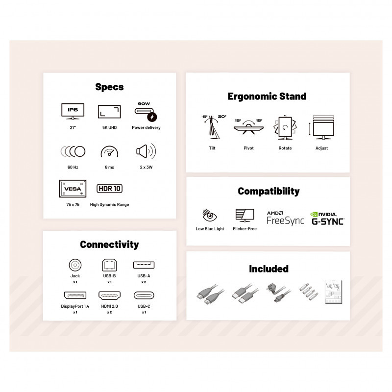 "JAPANNEXT JN-IPS275K-HSPC9. Display diagonal: 68.6 cm (27""), Display resolution: 5120 x 2880 pixels, HD type: 5K Ultra HD, Display technology: LED, Display surface: Matt, Response time: 8 ms, Native aspect ratio: 16:9. Built-in speaker(s). Built-in USB hub. VESA mounting. Product colour: Black, Silver"\n"The 27” JN-IPS275K-HSPC9 5K is the perfect monitor in terms of image quality. Exceptional 5k resolution, especially tailored for creative professionals and demanding users who want sharp, detailed images."
