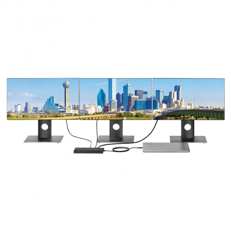 Aimed at reducing our environmental impact, all the plastic material used in the SD4842P is composed of up to 70% post-consumer recycled content (PCR). The SD4842P supports up to 3 external Full HD monitors (1080p @ 120Hz) via 1 x DP and 2 x HDMI® connections. The dock also eliminates the need for cumbersome adapters, charging connected accessories without relying on a host laptop connection.