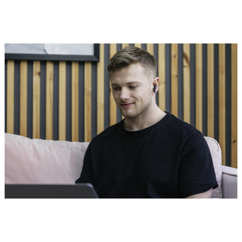 "JVC TWS Stix Black. Product type: Headset. Connectivity technology: True Wireless Stereo (TWS), Bluetooth. Recommended usage: Calls/Music. Headphone frequency: 20 - 20000 Hz. Wireless range: 10 m. Weight: 8.2 g. Product colour: Black"\n"With up to 22 hours of playback and a speedy 15-minute charge offering 90 minutes of listening time, these earbuds are ready whenever you are. Perfect for teleworking and hands-free calling, plus easy voice assistant activation on the earphone itself. Embrace true freedom with the HA-A3T earbuds, available in 2 colours black or white."