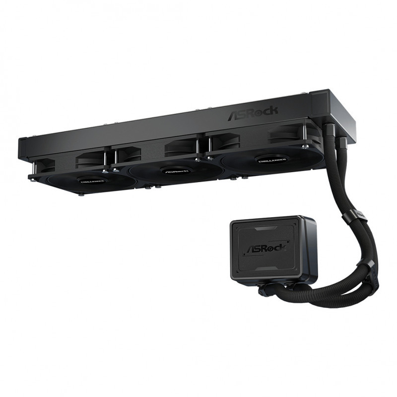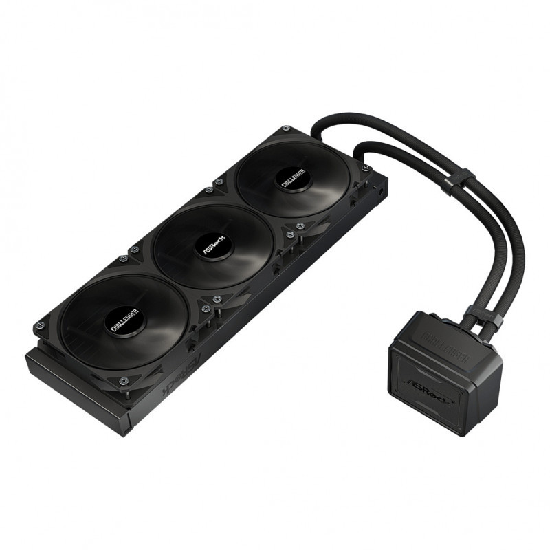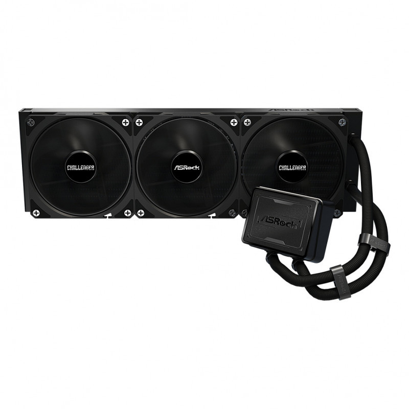 "Asrock Challenger Pure 360. Type: Liquid cooling kit, Fan diameter: 12 cm, Maximum air pressure: 2.2 mmH2O, Bearing type: Rifle bearing. Product colour: Black"\n"Challenger Pure redefines cooling with a clean, understated aesthetic.