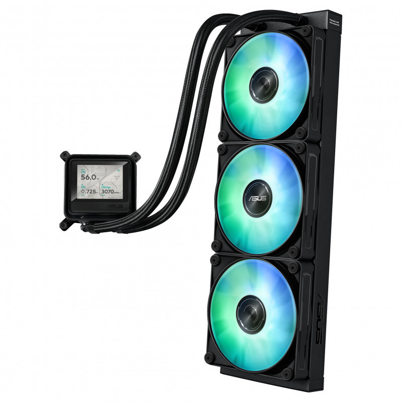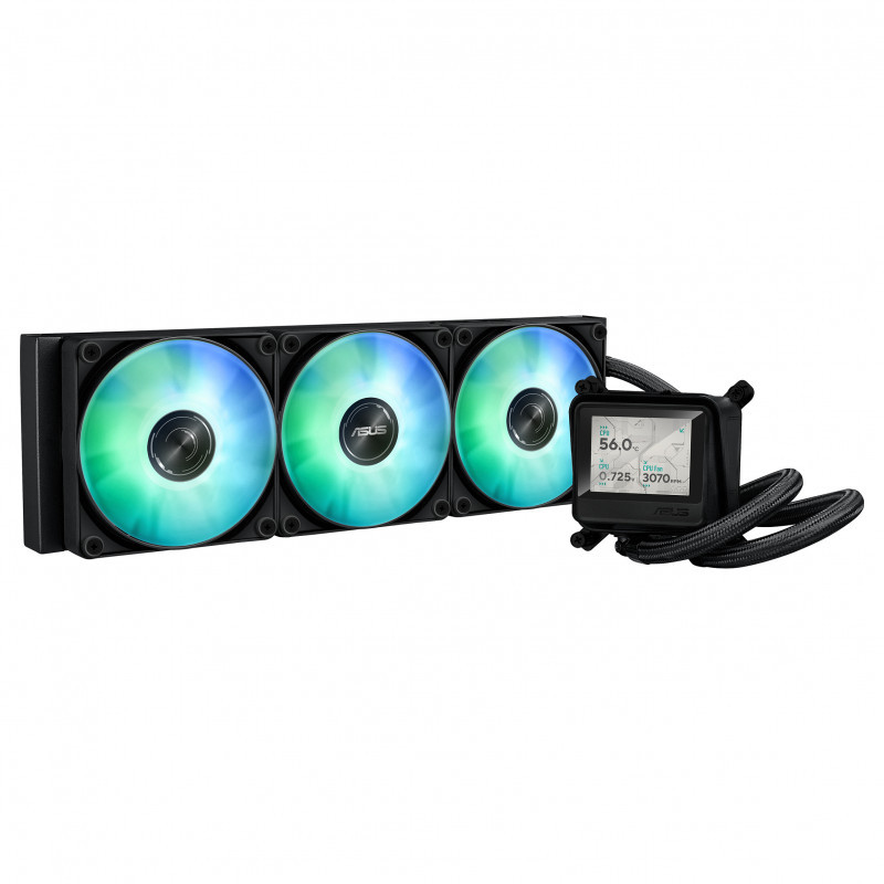 "ASUS MAX GAMING LC 360 ARGB LCD. Type: All-in-one liquid cooler, Fan diameter: 12 cm. Product colour: Black"\n"COOLING WITH A VISION