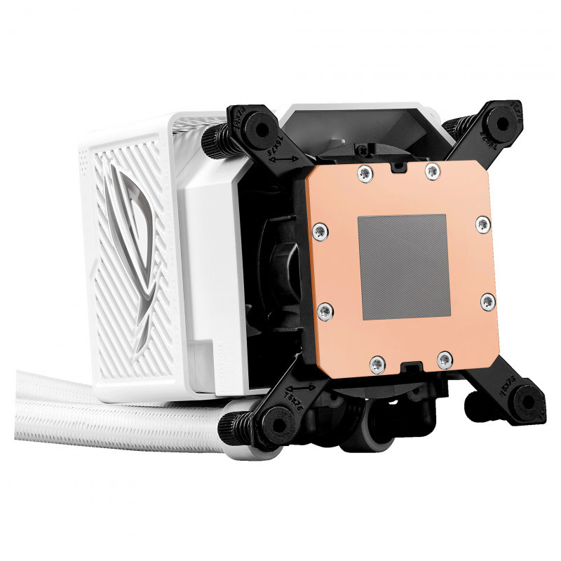 The ROG Ryujin III 360 ARGB Extreme White Edition is specially optimized for the heat zones of Intel® Core™ Ultra processors (Series 2). The combination of its adjustable bracket, a new pump and upgraded ROG fans can reduce CPU temperatures by up to 7.5%, compared to the standard ROG Ryujin III 360 ARGB.