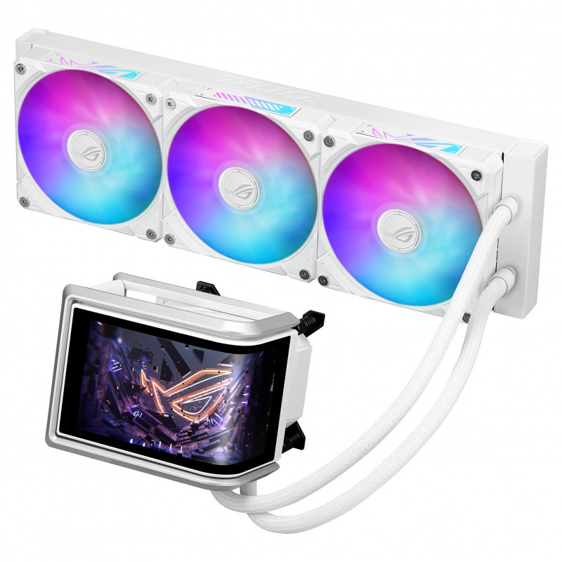 "ASUS ROG RYUO IV 360 ARGB WHT. Type: All-in-one liquid cooler, Fan diameter: 12 cm. Product colour: White"\n"ROG Ryuo IV 360 ARGB