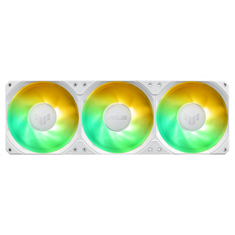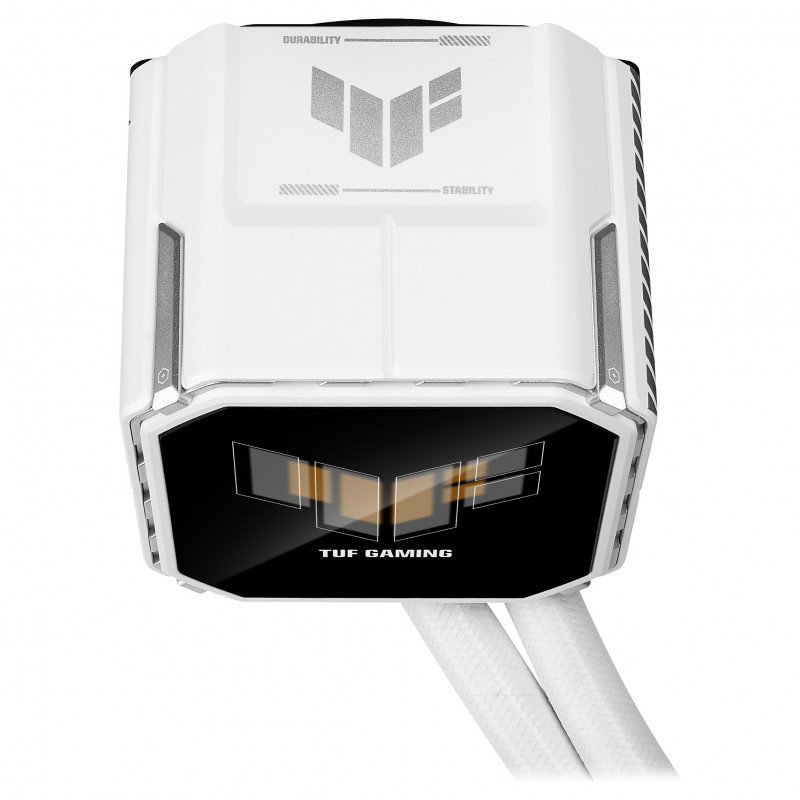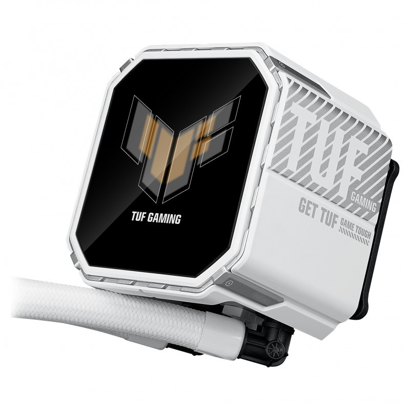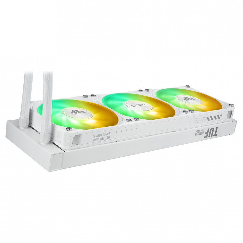 "ASUS TUF Gaming LC III 360 ARGB LCD White Edition. Type: All-in-one liquid cooler, Fan diameter: 12 cm. Product colour: White"\n"TUF Gaming LC III 360 ARGB LCD White Edition all-in-one liquid CPU cooler with pre-installed & integrated triple fans designed for high airflow and static pressure; 2.8"" LCD for hardware monitoring, custom GIFs and MP4 video clips"