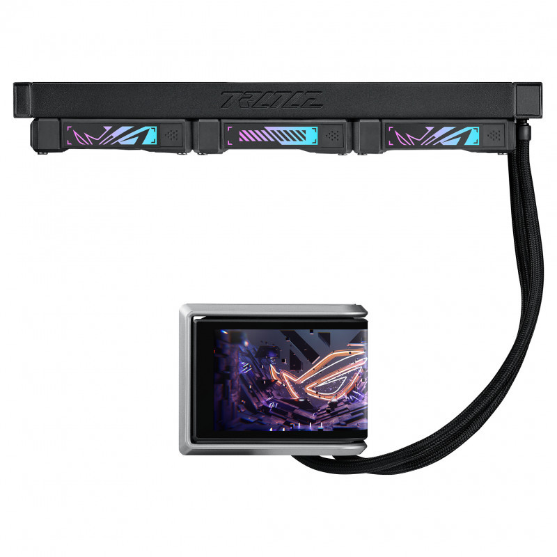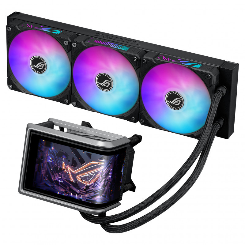 The ROG Ryuo IV 360 ARGB White Edition features a 6.67-inch AMOLED display with an innovative curved-screen design, enabling intuitive control through dedicated software to smoothly showcase 3D videos, customized content, or real-time hardware information. Cooling performance is driven by the upgraded Asetek Gen8 V2 pump, paired with ROG ARGB fans to deliver significantly advanced and stable thermal performance for high-end CPUs such as the AMD Ryzen™ 9000 and Intel® Core™ Ultra series."