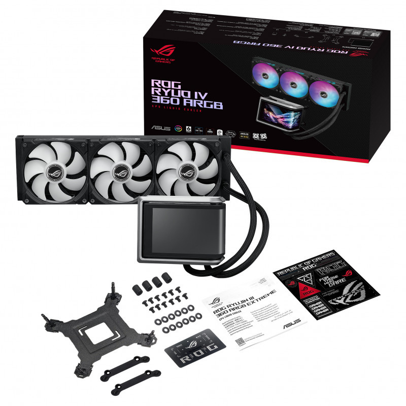 "ASUS ROG RYUO IV 360 ARGB. Type: All-in-one liquid cooler, Fan diameter: 12 cm. Product colour: Black"\n"ROG Ryuo IV 360 ARGB White Edition