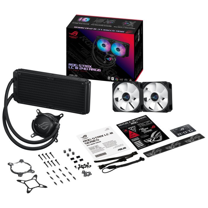 "ASUS ROG Strix LC III 240 ARGB. Type: Liquid cooling kit, Fan diameter: 12 cm. Product colour: Black"\n"Elevate Your Style. Empower Your Cooling.