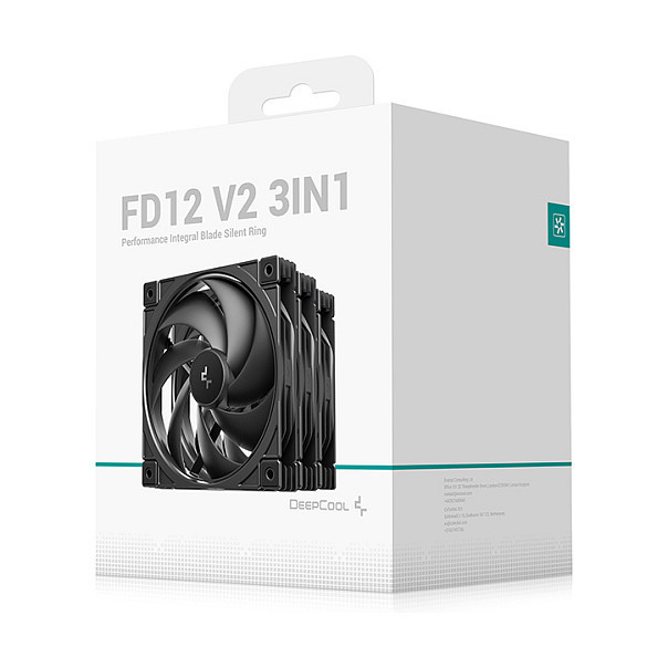 "DeepCool FD12 V2. Type: Fan, Fan diameter: 12 cm, Rotational speed (min): 500 RPM, Rotational speed (max): 2500 RPM, Maximum air pressure: 4.15 mmH2O, Bearing type: Hydraulic. Product colour: Black"\n