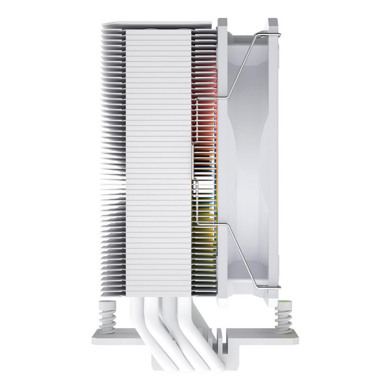 "FSP NP5-WA CPU Cooler Air 120 mm White ARGB. Type: Air cooler, Fan diameter: 12 cm, Rotational speed (min): 800 RPM, Rotational speed (max): 1600 RPM, Bearing type: Hydro Dynamic Bearing (HDB). Width: 94 mm, Depth: 120 mm, Height: 151 mm. Product colour: White"\n"Advanced Anti-Gravity Heat Pipes