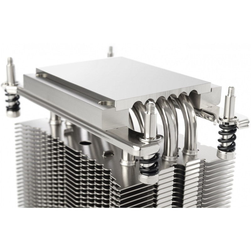 At 70x56mm, the copper contact surface of the TR4-SP3 version is more than double the size of the standard model. Tailored to fit the enormous integrated heat-spreaders (IHS) of AMD’s TR4/SP3-based processors, this customised design allows for an optimal heat flow from the CPU over the base to the heatpipes and on to the cooling fins.