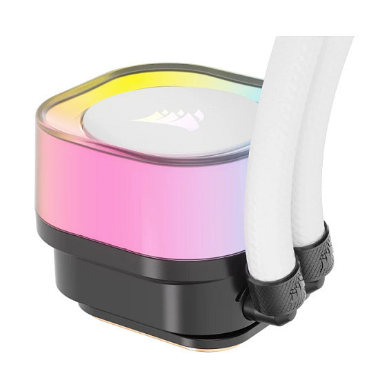 "Corsair H100I. Type: Hybrid cooler, Fan diameter: 12 cm, Rotational speed (min): 480 RPM, Rotational speed (max): 2400 RPM, Minimum air pressure: 0.17 mmH2O, Maximum air pressure: 3.8 mmH2O. Product colour: White"\n"iCUE LINK H100i RGB 240mm ALL-IN-ONE CPU COOLER