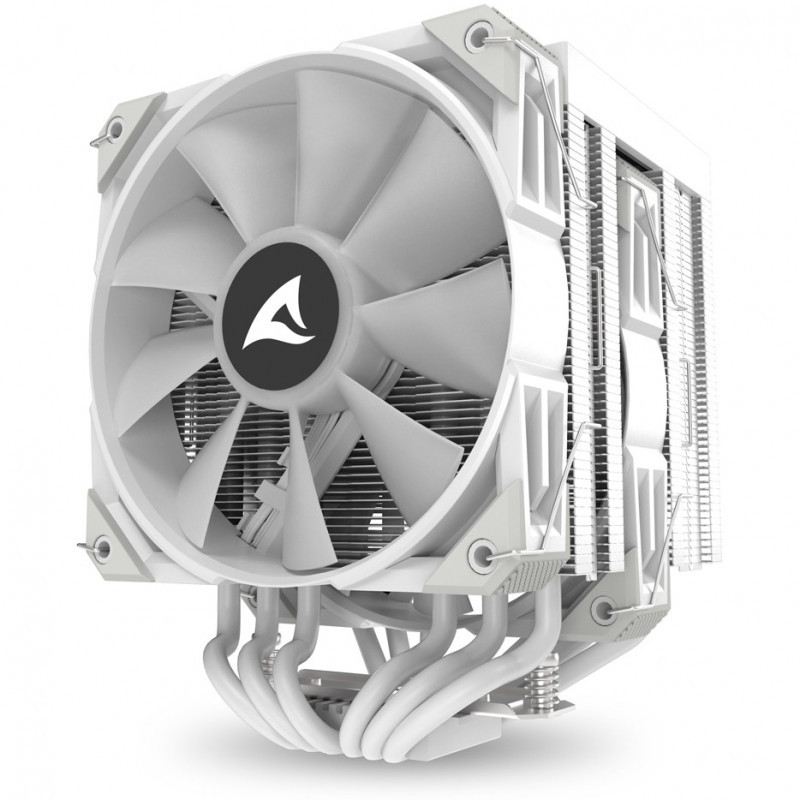 "Sharkoon A60 RGB. Type: Air cooler, Fan diameter: 12 cm, Rotational speed (min): 500 RPM, Rotational speed (max): 1800 RPM, Airflow: 121.55 m³/h, Maximum air pressure: 2.9 mmH2O, Bearing type: Fluid Dynamic Bearing (FDB). Width: 125 mm, Depth: 120 mm, Height: 159 mm. Product colour: White"\n