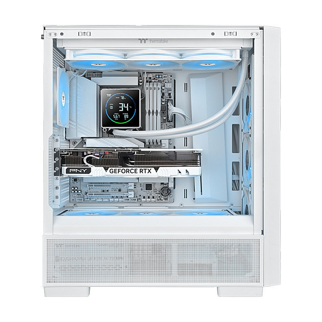 "Thermaltake TH360-S V3 ARGB. Type: All-in-one liquid cooler, Fan diameter: 12 cm, Rotational speed (min): 500 RPM, Rotational speed (max): 2500 RPM, Maximum air pressure: 3.86 mmH2O. Voltage: 12 V. Product colour: Black, White"\n"The TH360-S V3 ARGB Sync features a stylish square pump head with segment LCD display, along with a detachable top cover for orientation adjustment to match your build. The single-frame fan design achieves superior cable management for easy installation. Paired with high-performance ARGB fans reaching up to 2500 RPM, it delivers exceptional cooling performance.