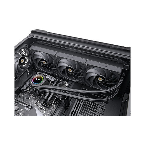 "Thermaltake CL-W401-PL14BL-A. Type: All-in-one liquid cooler, Fan diameter: 14 cm, Maximum air pressure: 3.57 mmH2O, Bearing type: Hydraulic. Product colour: Black"\n"TOUGHLIQUID 420 EX Pro introduces a new all-black industrial cap with an infinity mirror light design, adding a fresh look to the TOUGHLIQUID series. The AIO is equipped with three high-performance TOUGHFAN EX14 Pro fans, the TOUGHLIQUID 420 EX Pro provides a better PC building experience with the new MagForce 2.0, allowing you to snap the fans together more quickly and ensures a steadier connection!
