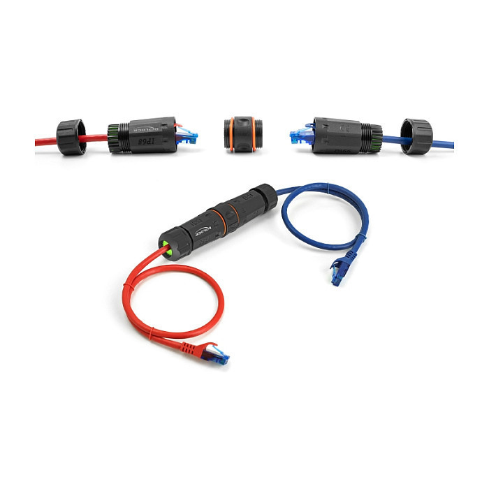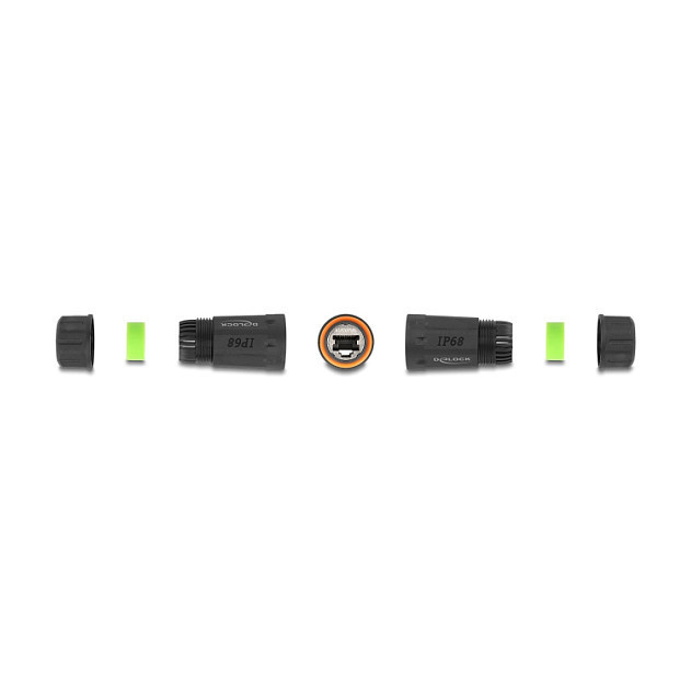 "DeLOCK Cable Connector RJ45 jack to RJ45 jack Cat.6A with M20 thread and two seals for slim cable IP68 dust and waterproof. Connector 1: RJ45, Connector 2: RJ45. Product colour: Black"\n"This cable connector by Delock connect RJ45 network cables and is ideal for outdoor use e.g. in the garden.