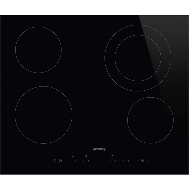 "Smeg Universal SE364ETD. Product colour: Black, Appliance placement: Built-in, Hob width size: 60 cm. Control type: Touch, Control position: Front. Connected load (electric): 6400 W, AC input voltage: 220-240 V, AC input frequency: 50 - 60 Hz. Width: 600 mm, Depth: 510 mm, Height: 50 mm"\n