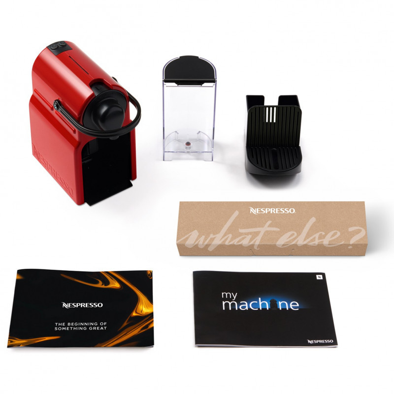 "Krups Nespresso XN1005K. Product type: Espresso machine, Coffee maker type: Semi-auto, Water tank capacity: 0.7 L, Coffee input type: Coffee capsule, Reservoir for brewed coffee: Cup, Capacity in cups: 1 cups. Power: 1260 W. Product colour: Red"\n