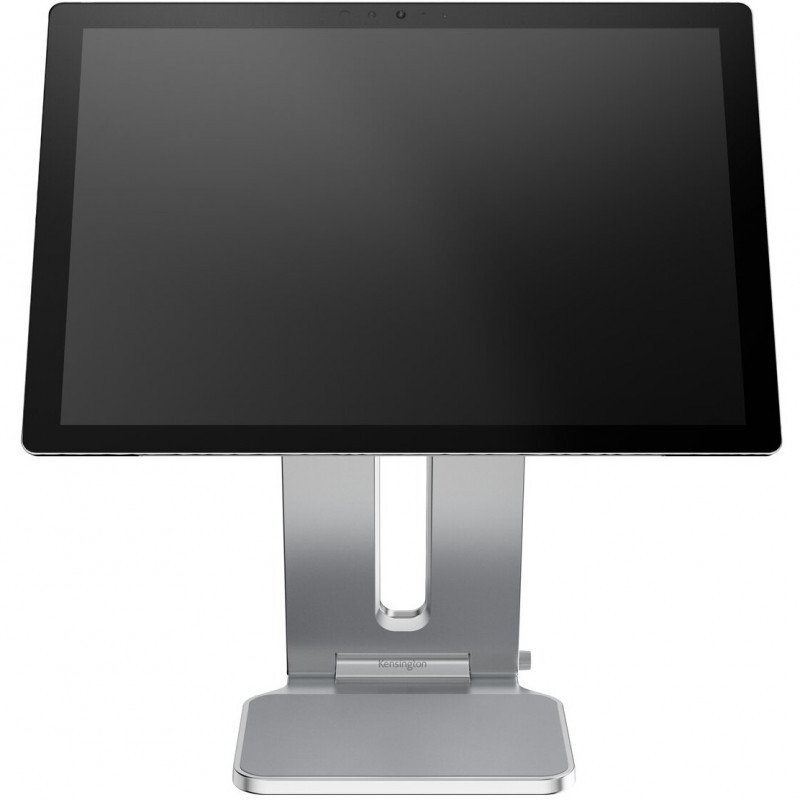 "Kensington Elevated Stand for Surface. Product colour: Platinum, Material: Aluminium, Rubber, Thermoplastic polyurethane (TPU), Zinc. Width: 126.4 mm, Depth: 139.3 mm, Height: 193 mm. Package width: 146 mm, Package depth: 230 mm, Package height: 27 mm. Master (outer) case width: 125 mm, Master (outer) case length: 240 mm, Master (outer) case height: 175 mm. Compatibility: Surface Pro 13”; Surface Pro 7+; Surface Pro 9; Surface Pro 12""; Surface Go 4; Surface Pro 10;..."\n"Designed exclusively for Surface in collaboration with Microsoft, the Elevated Stand for Surface is a sleek and compact accessory for your Surface Pro or Surface Go that effortlessly enhances comfort, security and productivity. This innovative all-in-one riser elevates the Surface to eye level to support ergo-friendly workstations with external keyboards and reduce neck, back and shoulder strain. Tilt and flip options accommodate optimum viewing angles. The stand includes additional thoughtful features such as a magnetic storage location for a Surflink™ connector and a cable management channel. Includes professional support and a two-year limited warranty."