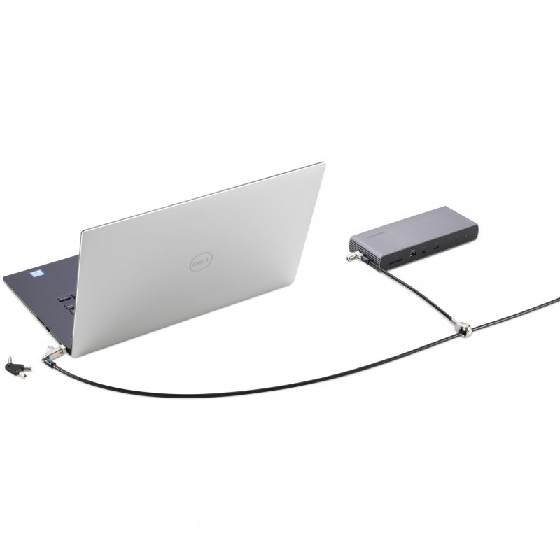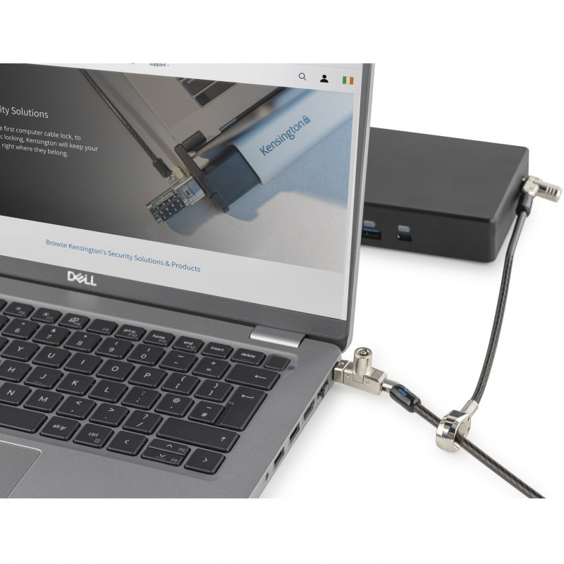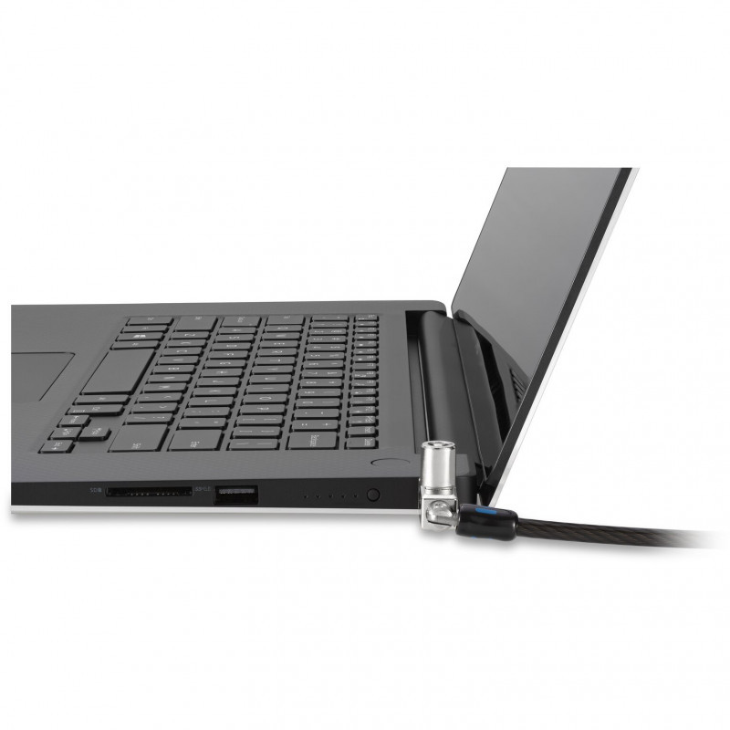 "Kensington Slim N17 2.0 Keyed Dual Head Laptop Lock for Wedge-Shaped Slots. Product colour: Black, Silver, Best uses: Laptop, Lock type: Key. Weight: 231.4 g. Quantity per pack: 1 pc(s), Package width: 200 mm, Package depth: 340 mm. Master (outer) cases per pallet layer: 25 pc(s), Master (outer) case width: 300 mm, Master (outer) case length: 345 mm"\n"Tested and approved by Dell, the Slim N17 2.0 Keyed Dual Head Laptop Lock for Wedge-Shaped Slots lets you lock two devices with a single solution, won’t block valuable ports, and allows the laptop to lie flat and stable. Secondary T-bar lock head secures peripheral accessories featuring the industry-standard Kensington Security Slot. Meets or exceeds rigorous strength testing standards. Features an omnidirectional pivoting head and rotating anchor, 5mm keying system, and free Register & Retrieve™ key registration and replacement. Five-year warranty. From Kensington, inventor of the laptop cable lock, and industry leader in physical device security for more than 30 years."