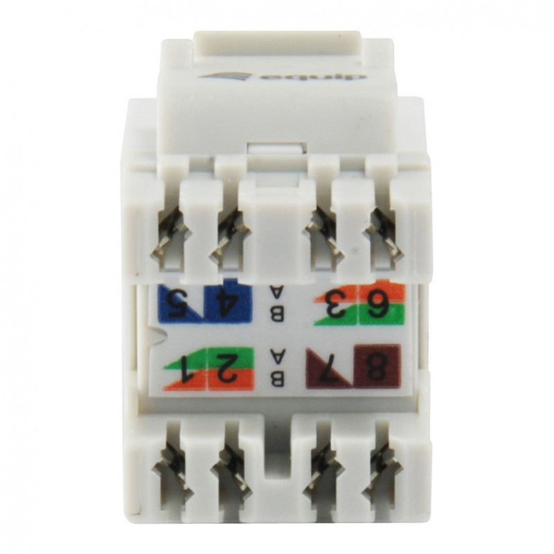 "Equip Cat.6 Unshielded Keystone Jack LSA, Slim Type, White. Construction type: Flat, Product colour: White, Connector 1: RJ-45. Width: 18 mm, Depth: 24.5 mm, Height: 41 mm. Package width: 203 mm, Package depth: 35 mm, Package height: 152 mm. Quantity per pack: 8 pc(s). Master (outer) case width: 480 mm, Master (outer) case length: 390 mm, Master (outer) case height: 253 mm"\n"- Slim type, specially designed for 1U 48-port Keystone Patch Panel (equip 769248)