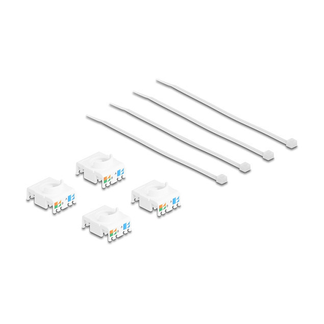 "DeLOCK 86050. Construction type: Flat, Connector 1: RJ-45, Connector 2: LSA. Width: 16.3 mm, Depth: 16.3 mm, Height: 23 mm. Package type: Polybag. Quantity per pack: 4 pc(s)"\n"This module by Delock can be used to connect twisted pair cable to an RJ45 jack. With its standardised dimensions it can be used for easy snap-in mounting in e.g. a Keystone patch panel, face plate or surface-mount box.
