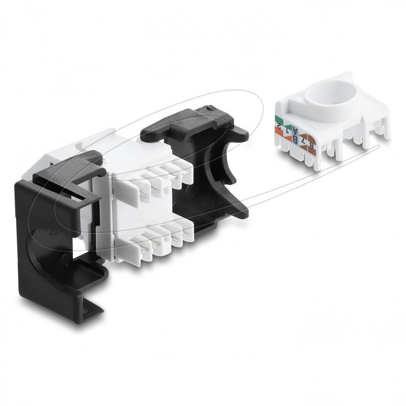 "DeLOCK 90936. Construction type: Flat, Product colour: Black, White, Connector 1: RJ-45. Width: 17 mm, Depth: 43.1 mm, Height: 19.4 mm. Quantity per pack: 1 pc(s)"\n"This module by Delock can be used to connect a network cable and is suitable for easy snap-in mounting in various holders, such as keystone patch panels, face plates or surface-mount boxes.