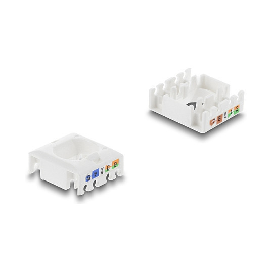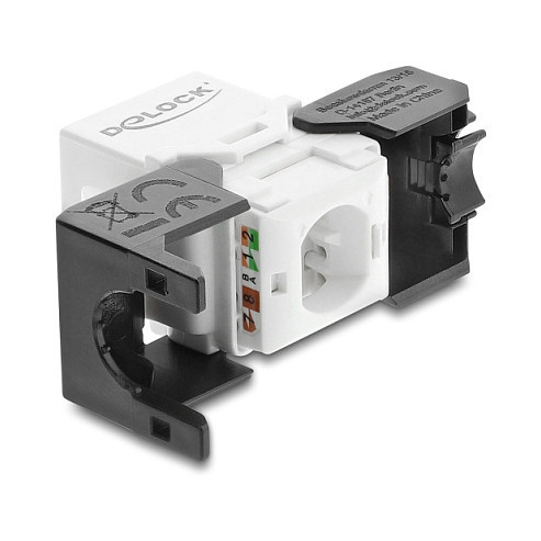 "DeLOCK Keystone Module RJ45 jack to LSA Cat.6 UTP tool-free black / white. Construction type: Flat, Product colour: Black, White, Connector 1: RJ-45. Width: 16.2 mm, Depth: 28.2 mm, Height: 19.4 mm. Package type: Polybag. Quantity per pack: 1 pc(s). Country of origin: China"\n"This module by Delock can be used to connect a network cable and is suitable for easy snap-in mounting in various holders, such as keystone patch panels, face plates or surface-mount boxes."