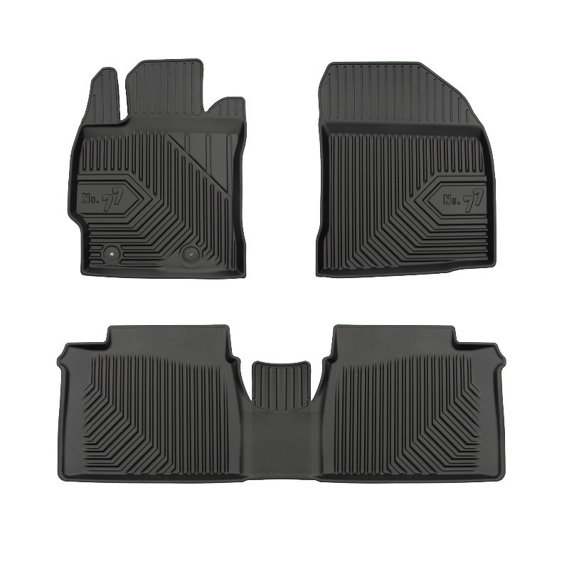 Guminiai ProLine 3D kilimėliai: (aukštos kokybės plastiko, gumos mišinys / TPE, komplektas - 4vnt., juodi, krašto aukštis 7 cm, montavimo būdas - spaustukai). AUTOMOBILIŲ KILIMĖLIAI FROGUM 3D PROLINE LUXURY • Dėl naujoviškos 3D skenavimo technologijos atitinka idealiai; • Kraštai papildomai apsaugoti – aukštis 7 cm, visada švarus automobilis; • Itin patvari medžiaga su unikalia neslystančia struktūra, atspari nešvarumams. • Išskirtinis stabilumas dėl spaustukų – lengvai montuojama spustelėjus; • Pakojo zonos apsauga – komfortas, leidžiantis nuleisti vairuotojo koją; 3D ProLine aukštos kokybės guminiai kilimėliai padeda išlaikyti automobilį švarų. Modernus ir funkcionalus dizainas, ir ypač aukštas kraštas garantuoja efektyvų vandens ir purvo surinkimą ir neleidžia jiems išbėgti. Taip automobilio salonas išlieka švarus. Pagaminti iš aukštos kokybės gumos, kurioje nėra toksiškų komponentų. Bekvapis. Kilimėliai idealiai atitinka ir puikiai priglunda prie salono grindų. Guminiai kilimėliai išlaiko savo elastingumą net esant temperatūros pokyčiams. Specialus paviršius neleidžia kilimėliams slysti vairuojant, o tai daro didelę įtaką saugumui ir kelionės patogumui