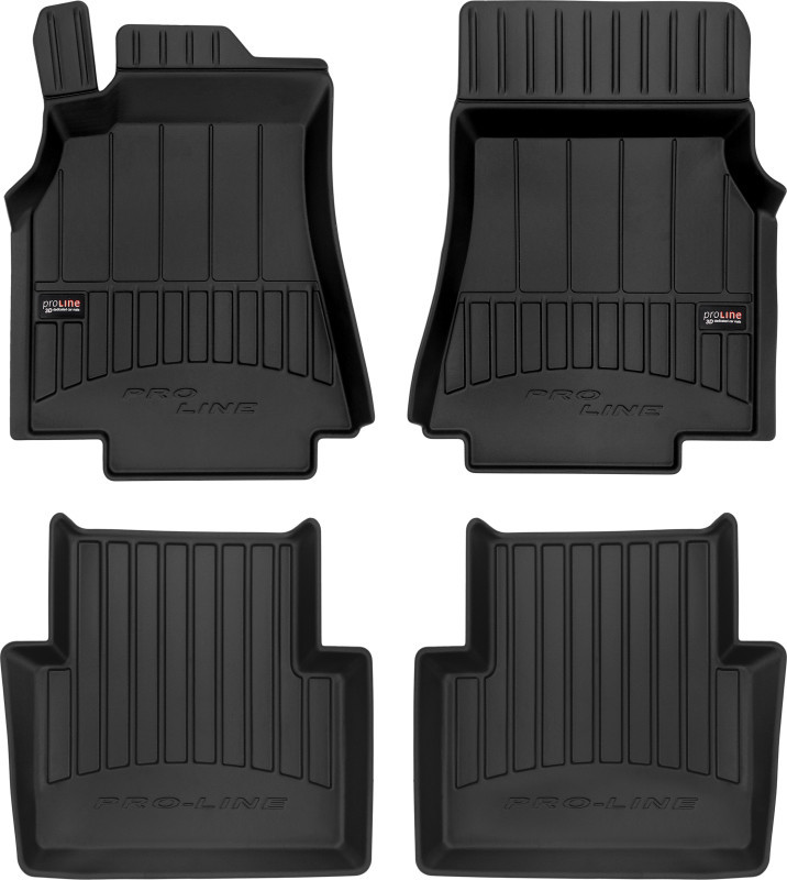 Guminiai ProLine 3D kilimėliai: (aukštos kokybės plastiko, gumos mišinys / TPE, komplektas - 4vnt., juodi, krašto aukštis 7 cm, montavimo būdas - spaustukai). AUTOMOBILIŲ KILIMĖLIAI FROGUM 3D PROLINE LUXURY • Dėl naujoviškos 3D skenavimo technologijos atitinka idealiai; • Kraštai papildomai apsaugoti – aukštis 7 cm, visada švarus automobilis; • Itin patvari medžiaga su unikalia neslystančia struktūra, atspari nešvarumams. • Išskirtinis stabilumas dėl spaustukų – lengvai montuojama spustelėjus; • Pakojo zonos apsauga – komfortas, leidžiantis nuleisti vairuotojo koją; 3D ProLine aukštos kokybės guminiai kilimėliai padeda išlaikyti automobilį švarų. Modernus ir funkcionalus dizainas, ir ypač aukštas kraštas garantuoja efektyvų vandens ir purvo surinkimą ir neleidžia jiems išbėgti. Taip automobilio salonas išlieka švarus. Pagaminti iš aukštos kokybės gumos, kurioje nėra toksiškų komponentų. Bekvapis. Kilimėliai idealiai atitinka ir puikiai priglunda prie salono grindų. Guminiai kilimėliai išlaiko savo elastingumą net esant temperatūros pokyčiams. Specialus paviršius neleidžia kilimėliams slysti vairuojant, o tai daro didelę įtaką saugumui ir kelionės patogumui