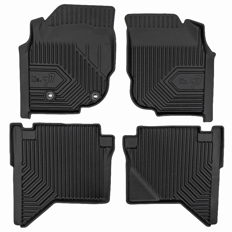 Guminiai ProLine 3D kilimėliai: (aukštos kokybės plastiko, gumos mišinys / TPE, komplektas - 4vnt., juodi, krašto aukštis 7 cm, montavimo būdas - spaustukai). AUTOMOBILIŲ KILIMĖLIAI FROGUM 3D PROLINE LUXURY • Dėl naujoviškos 3D skenavimo technologijos atitinka idealiai; • Kraštai papildomai apsaugoti – aukštis 7 cm, visada švarus automobilis; • Itin patvari medžiaga su unikalia neslystančia struktūra, atspari nešvarumams. • Išskirtinis stabilumas dėl spaustukų – lengvai montuojama spustelėjus; • Pakojo zonos apsauga – komfortas, leidžiantis nuleisti vairuotojo koją; 3D ProLine aukštos kokybės guminiai kilimėliai padeda išlaikyti automobilį švarų. Modernus ir funkcionalus dizainas, ir ypač aukštas kraštas garantuoja efektyvų vandens ir purvo surinkimą ir neleidžia jiems išbėgti. Taip automobilio salonas išlieka švarus. Pagaminti iš aukštos kokybės gumos, kurioje nėra toksiškų komponentų. Bekvapis. Kilimėliai idealiai atitinka ir puikiai priglunda prie salono grindų. Guminiai kilimėliai išlaiko savo elastingumą net esant temperatūros pokyčiams. Specialus paviršius neleidžia kilimėliams slysti vairuojant, o tai daro didelę įtaką saugumui ir kelionės patogumui