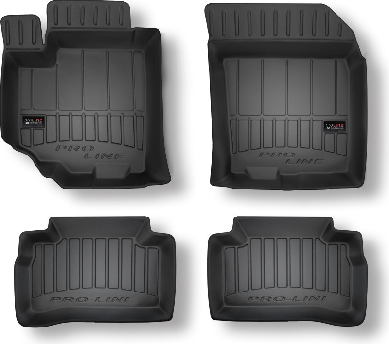 Guminiai Premium 77 kilimėliai: (aukštos kokybės plastiko, gumos mišinys / TPE, komplektas - 3vnt., juodi, krašto aukštis 4 cm, montavimo būdas - spaustukai). AUTOMOBILIŲ KILIMĖLIAI FROGUM 77 PREMIUM • Dėl naujoviškos 3D skenavimo technologijos atitinka idealiai; • Krašto aukštis - 4 cm suteikia didesnę apsaugą nuo nešvarumų • Modernus ir funkcionalus dizainas, išlaikantis nešvarumus kilimėlio viduje • Neslystantys spacialūs spaustukai, lengva montuoti; • Speciali apsauga, leidžianti nuleisti vairuotojo koją; Aukšto lygio apsauga jūsų automobiliui, kilimėliai idealiai atitinka ir puikiai priglunda prie salono grindų. Modernus ir funkcionalus dizainas, bei aukštas kraštas garantuoja efektyvų vandens ir purvo surinkimą ir neleidžia jam nutekėti. Taip automobilio salonas išlieka švarus. Pagaminti iš aukštos kokybės gumos, kurioje nėra toksiškų komponentų. Bekvapis. Kilimėliai turi spaustukus, todėl jį lengva pritvirtinti prie grindų. Guminiai kilimėliai išlaiko savo elastingumą net esant temperatūros pokyčiams. Specialus paviršius neleidžia kilimėliams slysti vairuojant, todėl labai paveikia saugumą ir kelionės komfortą.