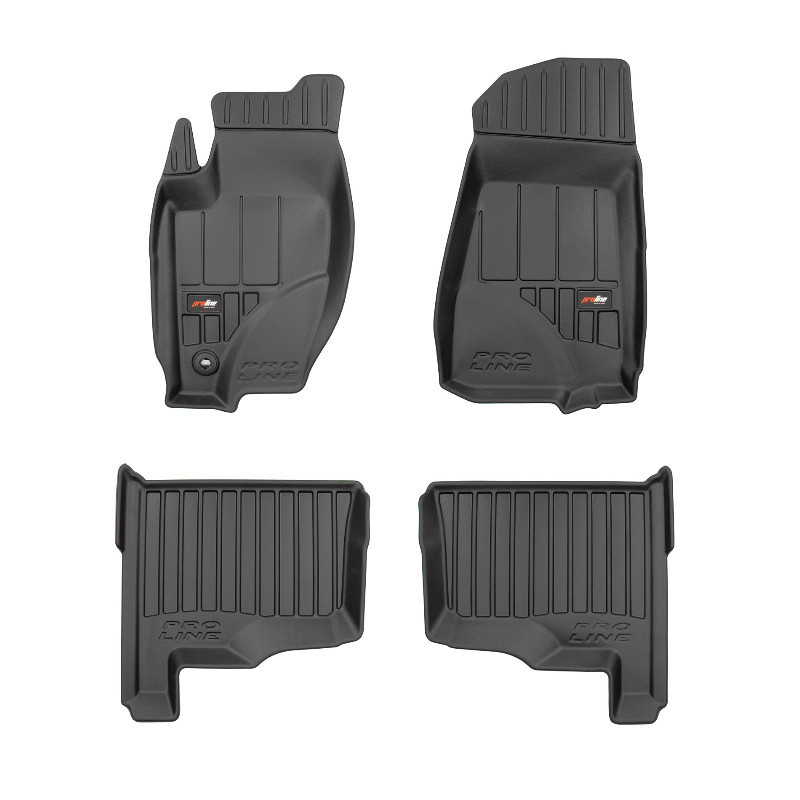 Guminiai ProLine 3D kilimėliai: (aukštos kokybės plastiko, gumos mišinys / TPE, komplektas - 4vnt., juodi, krašto aukštis 7 cm, montavimo būdas - spaustukai). AUTOMOBILIŲ KILIMĖLIAI FROGUM 3D PROLINE LUXURY • Dėl naujoviškos 3D skenavimo technologijos atitinka idealiai; • Kraštai papildomai apsaugoti – aukštis 7 cm, visada švarus automobilis; • Itin patvari medžiaga su unikalia neslystančia struktūra, atspari nešvarumams. • Išskirtinis stabilumas dėl spaustukų – lengvai montuojama spustelėjus; • Pakojo zonos apsauga – komfortas, leidžiantis nuleisti vairuotojo koją; 3D ProLine aukštos kokybės guminiai kilimėliai padeda išlaikyti automobilį švarų. Modernus ir funkcionalus dizainas, ir ypač aukštas kraštas garantuoja efektyvų vandens ir purvo surinkimą ir neleidžia jiems išbėgti. Taip automobilio salonas išlieka švarus. Pagaminti iš aukštos kokybės gumos, kurioje nėra toksiškų komponentų. Bekvapis. Kilimėliai idealiai atitinka ir puikiai priglunda prie salono grindų. Guminiai kilimėliai išlaiko savo elastingumą net esant temperatūros pokyčiams. Specialus paviršius neleidžia kilimėliams slysti vairuojant, o tai daro didelę įtaką saugumui ir kelionės patogumui.