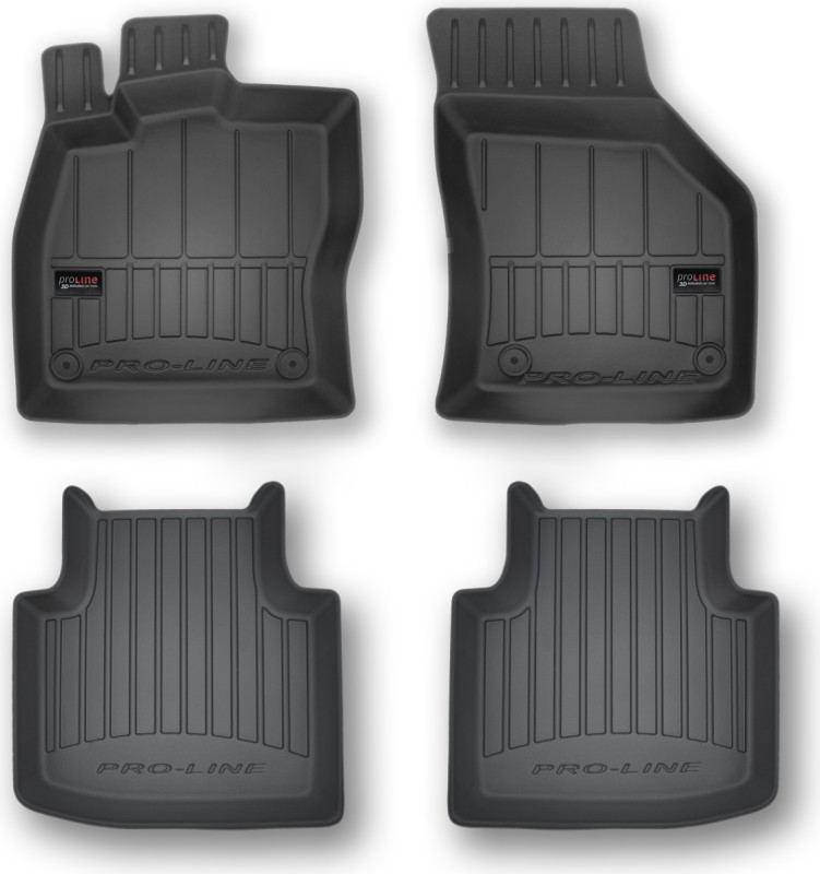 Guminiai ProLine 3D kilimėliai: (aukštos kokybės plastiko, gumos mišinys / TPE, komplektas - 3vnt., juodi, krašto aukštis 7 cm, montavimo būdas - spaustukai). AUTOMOBILIŲ KILIMĖLIAI FROGUM 3D PROLINE LUXURY • Dėl naujoviškos 3D skenavimo technologijos atitinka idealiai; • Kraštai papildomai apsaugoti – aukštis 7 cm, visada švarus automobilis; • Itin patvari medžiaga su unikalia neslystančia struktūra, atspari nešvarumams. • Išskirtinis stabilumas dėl spaustukų – lengvai montuojama spustelėjus; • Pakojo zonos apsauga – komfortas, leidžiantis nuleisti vairuotojo koją; 3D ProLine aukštos kokybės guminiai kilimėliai padeda išlaikyti automobilį švarų. Modernus ir funkcionalus dizainas, ir ypač aukštas kraštas garantuoja efektyvų vandens ir purvo surinkimą ir neleidžia jiems išbėgti. Taip automobilio salonas išlieka švarus. Pagaminti iš aukštos kokybės gumos, kurioje nėra toksiškų komponentų. Bekvapis. Kilimėliai idealiai atitinka ir puikiai priglunda prie salono grindų. Guminiai kilimėliai išlaiko savo elastingumą net esant temperatūros pokyčiams. Specialus paviršius neleidžia kilimėliams slysti vairuojant, o tai daro didelę įtaką saugumui ir kelionės patogumui