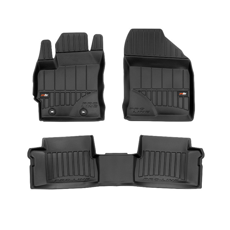 Guminiai Premium 77 kilimėliai: (aukštos kokybės plastiko, gumos mišinys / TPE, komplektas - 3vnt., juodi, krašto aukštis 4 cm, montavimo būdas - spaustukai). AUTOMOBILIŲ KILIMĖLIAI FROGUM 77 PREMIUM • Dėl naujoviškos 3D skenavimo technologijos atitinka idealiai; • Krašto aukštis - 4 cm suteikia didesnę apsaugą nuo nešvarumų • Modernus ir funkcionalus dizainas, išlaikantis nešvarumus kilimėlio viduje • Neslystantys spacialūs spaustukai, lengva montuoti; • Speciali apsauga, leidžianti nuleisti vairuotojo koją; Aukšto lygio apsauga jūsų automobiliui, kilimėliai idealiai atitinka ir puikiai priglunda prie salono grindų. Modernus ir funkcionalus dizainas, bei aukštas kraštas garantuoja efektyvų vandens ir purvo surinkimą ir neleidžia jam nutekėti. Taip automobilio salonas išlieka švarus. Pagaminti iš aukštos kokybės gumos, kurioje nėra toksiškų komponentų. Bekvapis. Kilimėliai turi spaustukus, todėl jį lengva pritvirtinti prie grindų. Guminiai kilimėliai išlaiko savo elastingumą net esant temperatūros pokyčiams. Specialus paviršius neleidžia kilimėliams slysti vairuojant, todėl labai paveikia saugumą ir kelionės komfortą.