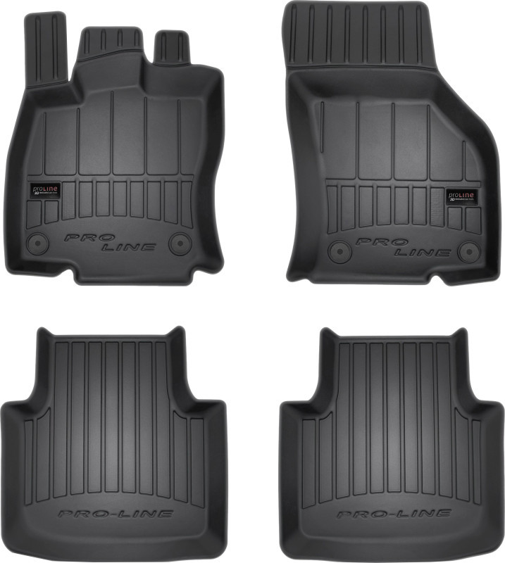 Guminiai ProLine 3D kilimėliai: (aukštos kokybės plastiko, gumos mišinys / TPE, komplektas - 4vnt., juodi, krašto aukštis 7 cm, montavimo būdas - spaustukai). AUTOMOBILIŲ KILIMĖLIAI FROGUM 3D PROLINE LUXURY • Dėl naujoviškos 3D skenavimo technologijos atitinka idealiai; • Kraštai papildomai apsaugoti – aukštis 7 cm, visada švarus automobilis; • Itin patvari medžiaga su unikalia neslystančia struktūra, atspari nešvarumams. • Išskirtinis stabilumas dėl spaustukų – lengvai montuojama spustelėjus; • Pakojo zonos apsauga – komfortas, leidžiantis nuleisti vairuotojo koją; 3D ProLine aukštos kokybės guminiai kilimėliai padeda išlaikyti automobilį švarų. Modernus ir funkcionalus dizainas, ir ypač aukštas kraštas garantuoja efektyvų vandens ir purvo surinkimą ir neleidžia jiems išbėgti. Taip automobilio salonas išlieka švarus. Pagaminti iš aukštos kokybės gumos, kurioje nėra toksiškų komponentų. Bekvapis. Kilimėliai idealiai atitinka ir puikiai priglunda prie salono grindų. Guminiai kilimėliai išlaiko savo elastingumą net esant temperatūros pokyčiams. Specialus paviršius neleidžia kilimėliams slysti vairuojant, o tai daro didelę įtaką saugumui ir kelionės patogumui