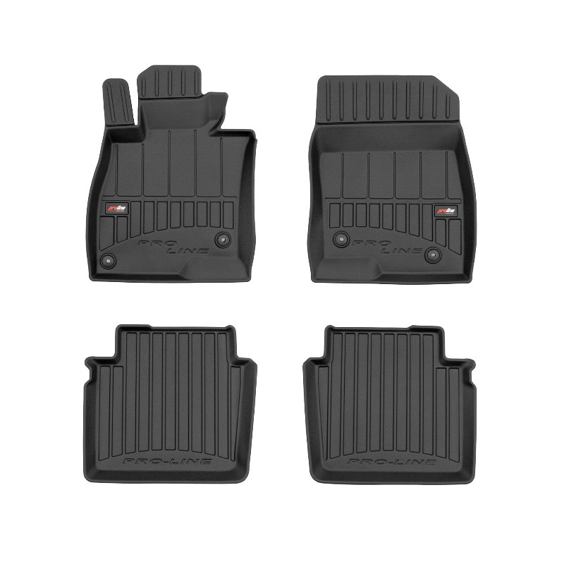 Guminiai ProLine 3D kilimėliai: (aukštos kokybės plastiko, gumos mišinys / TPE, komplektas - 4vnt., juodi, krašto aukštis 7 cm, montavimo būdas - spaustukai). AUTOMOBILIŲ KILIMĖLIAI FROGUM 3D PROLINE LUXURY • Dėl naujoviškos 3D skenavimo technologijos atitinka idealiai; • Kraštai papildomai apsaugoti – aukštis 7 cm, visada švarus automobilis; • Itin patvari medžiaga su unikalia neslystančia struktūra, atspari nešvarumams. • Išskirtinis stabilumas dėl spaustukų – lengvai montuojama spustelėjus; • Pakojo zonos apsauga – komfortas, leidžiantis nuleisti vairuotojo koją; 3D ProLine aukštos kokybės guminiai kilimėliai padeda išlaikyti automobilį švarų. Modernus ir funkcionalus dizainas, ir ypač aukštas kraštas garantuoja efektyvų vandens ir purvo surinkimą ir neleidžia jiems išbėgti. Taip automobilio salonas išlieka švarus. Pagaminti iš aukštos kokybės gumos, kurioje nėra toksiškų komponentų. Bekvapis. Kilimėliai idealiai atitinka ir puikiai priglunda prie salono grindų. Guminiai kilimėliai išlaiko savo elastingumą net esant temperatūros pokyčiams. Specialus paviršius neleidžia kilimėliams slysti vairuojant, o tai daro didelę įtaką saugumui ir kelionės patogumui