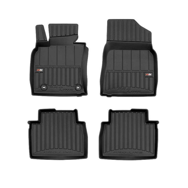 Guminiai Premium 77 kilimėliai: (aukštos kokybės plastiko, gumos mišinys / TPE, komplektas - 4vnt., juodi, krašto aukštis 4 cm, montavimo būdas - spaustukai). AUTOMOBILIŲ KILIMĖLIAI FROGUM 77 PREMIUM • Dėl naujoviškos 3D skenavimo technologijos atitinka idealiai; • Krašto aukštis - 4 cm suteikia didesnę apsaugą nuo nešvarumų • Modernus ir funkcionalus dizainas, išlaikantis nešvarumus kilimėlio viduje • Neslystantys spacialūs spaustukai, lengva montuoti; • Speciali apsauga, leidžianti nuleisti vairuotojo koją; Aukšto lygio apsauga jūsų automobiliui, kilimėliai idealiai atitinka ir puikiai priglunda prie salono grindų. Modernus ir funkcionalus dizainas, bei aukštas kraštas garantuoja efektyvų vandens ir purvo surinkimą ir neleidžia jam nutekėti. Taip automobilio salonas išlieka švarus. Pagaminti iš aukštos kokybės gumos, kurioje nėra toksiškų komponentų. Bekvapis. Kilimėliai turi spaustukus, todėl jį lengva pritvirtinti prie grindų. Guminiai kilimėliai išlaiko savo elastingumą net esant temperatūros pokyčiams. Specialus paviršius neleidžia kilimėliams slysti vairuojant, todėl labai paveikia saugumą ir kelionės komfortą.