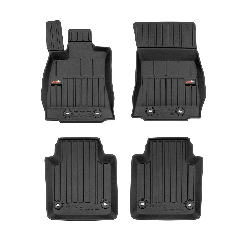 Guminiai ProLine 3D kilimėliai: (aukštos kokybės plastiko, gumos mišinys / TPE, komplektas - 4vnt., juodi, krašto aukštis 7 cm, montavimo būdas - spaustukai). AUTOMOBILIŲ KILIMĖLIAI FROGUM 3D PROLINE LUXURY • Dėl naujoviškos 3D skenavimo technologijos atitinka idealiai; • Kraštai papildomai apsaugoti – aukštis 7 cm, visada švarus automobilis; • Itin patvari medžiaga su unikalia neslystančia struktūra, atspari nešvarumams. • Išskirtinis stabilumas dėl spaustukų – lengvai montuojama spustelėjus; • Pakojo zonos apsauga – komfortas, leidžiantis nuleisti vairuotojo koją; 3D ProLine aukštos kokybės guminiai kilimėliai padeda išlaikyti automobilį švarų. Modernus ir funkcionalus dizainas, ir ypač aukštas kraštas garantuoja efektyvų vandens ir purvo surinkimą ir neleidžia jiems išbėgti. Taip automobilio salonas išlieka švarus. Pagaminti iš aukštos kokybės gumos, kurioje nėra toksiškų komponentų. Bekvapis. Kilimėliai idealiai atitinka ir puikiai priglunda prie salono grindų. Guminiai kilimėliai išlaiko savo elastingumą net esant temperatūros pokyčiams. Specialus paviršius neleidžia kilimėliams slysti vairuojant, o tai daro didelę įtaką saugumui ir kelionės patogumui