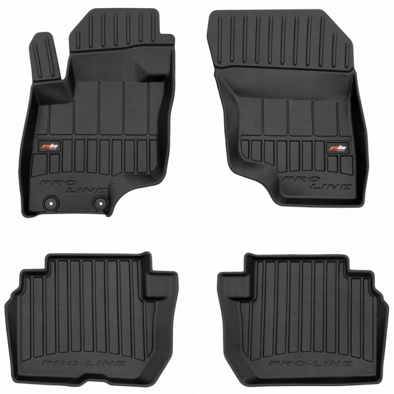 Guminiai ProLine 3D kilimėliai: (aukštos kokybės plastiko, gumos mišinys / TPE, komplektas - 3vnt., juodi, krašto aukštis 7 cm, montavimo būdas - spaustukai). AUTOMOBILIŲ KILIMĖLIAI FROGUM 3D PROLINE LUXURY • Dėl naujoviškos 3D skenavimo technologijos atitinka idealiai; • Kraštai papildomai apsaugoti – aukštis 7 cm, visada švarus automobilis; • Itin patvari medžiaga su unikalia neslystančia struktūra, atspari nešvarumams. • Išskirtinis stabilumas dėl spaustukų – lengvai montuojama spustelėjus; • Pakojo zonos apsauga – komfortas, leidžiantis nuleisti vairuotojo koją; 3D ProLine aukštos kokybės guminiai kilimėliai padeda išlaikyti automobilį švarų. Modernus ir funkcionalus dizainas, ir ypač aukštas kraštas garantuoja efektyvų vandens ir purvo surinkimą ir neleidžia jiems išbėgti. Taip automobilio salonas išlieka švarus. Pagaminti iš aukštos kokybės gumos, kurioje nėra toksiškų komponentų. Bekvapis. Kilimėliai idealiai atitinka ir puikiai priglunda prie salono grindų. Guminiai kilimėliai išlaiko savo elastingumą net esant temperatūros pokyčiams. Specialus paviršius neleidžia kilimėliams slysti vairuojant, o tai daro didelę įtaką saugumui ir kelionės patogumui