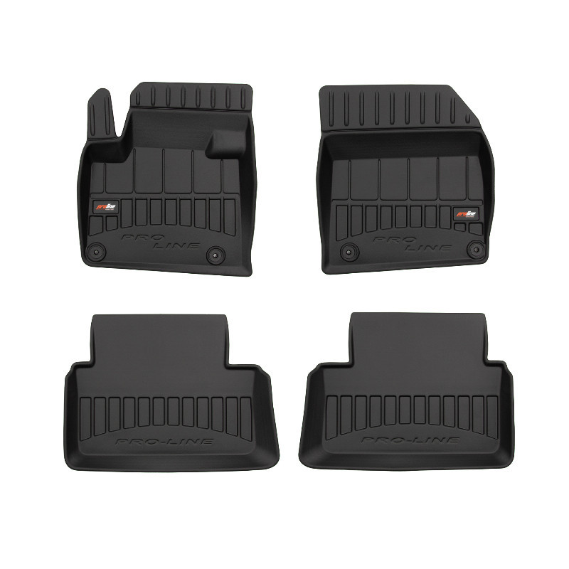 Guminiai ProLine 3D kilimėliai: (aukštos kokybės plastiko, gumos mišinys / TPE, komplektas - 3vnt., juodi, krašto aukštis 7 cm, montavimo būdas - spaustukai). AUTOMOBILIŲ KILIMĖLIAI FROGUM 3D PROLINE LUXURY • Dėl naujoviškos 3D skenavimo technologijos atitinka idealiai; • Kraštai papildomai apsaugoti – aukštis 7 cm, visada švarus automobilis; • Itin patvari medžiaga su unikalia neslystančia struktūra, atspari nešvarumams. • Išskirtinis stabilumas dėl spaustukų – lengvai montuojama spustelėjus; • Pakojo zonos apsauga – komfortas, leidžiantis nuleisti vairuotojo koją; 3D ProLine aukštos kokybės guminiai kilimėliai padeda išlaikyti automobilį švarų. Modernus ir funkcionalus dizainas, ir ypač aukštas kraštas garantuoja efektyvų vandens ir purvo surinkimą ir neleidžia jiems išbėgti. Taip automobilio salonas išlieka švarus. Pagaminti iš aukštos kokybės gumos, kurioje nėra toksiškų komponentų. Bekvapis. Kilimėliai idealiai atitinka ir puikiai priglunda prie salono grindų. Guminiai kilimėliai išlaiko savo elastingumą net esant temperatūros pokyčiams. Specialus paviršius neleidžia kilimėliams slysti vairuojant, o tai daro didelę įtaką saugumui ir kelionės patogumui