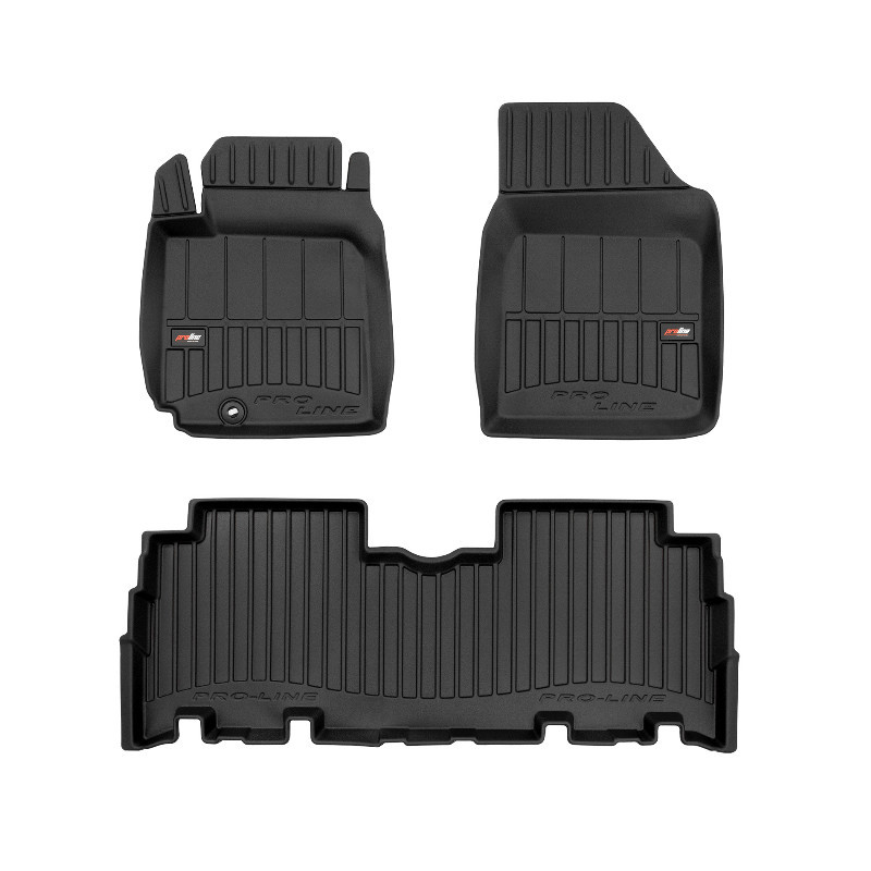 Guminiai ProLine 3D kilimėliai: (aukštos kokybės plastiko, gumos mišinys / TPE, komplektas - 4vnt., juodi, krašto aukštis 7 cm, montavimo būdas - spaustukai). AUTOMOBILIŲ KILIMĖLIAI FROGUM 3D PROLINE LUXURY • Dėl naujoviškos 3D skenavimo technologijos atitinka idealiai; • Kraštai papildomai apsaugoti – aukštis 7 cm, visada švarus automobilis; • Itin patvari medžiaga su unikalia neslystančia struktūra, atspari nešvarumams. • Išskirtinis stabilumas dėl spaustukų – lengvai montuojama spustelėjus; • Pakojo zonos apsauga – komfortas, leidžiantis nuleisti vairuotojo koją; 3D ProLine aukštos kokybės guminiai kilimėliai padeda išlaikyti automobilį švarų. Modernus ir funkcionalus dizainas, ir ypač aukštas kraštas garantuoja efektyvų vandens ir purvo surinkimą ir neleidžia jiems išbėgti. Taip automobilio salonas išlieka švarus. Pagaminti iš aukštos kokybės gumos, kurioje nėra toksiškų komponentų. Bekvapis. Kilimėliai idealiai atitinka ir puikiai priglunda prie salono grindų. Guminiai kilimėliai išlaiko savo elastingumą net esant temperatūros pokyčiams. Specialus paviršius neleidžia kilimėliams slysti vairuojant, o tai daro didelę įtaką saugumui ir kelionės patogumui