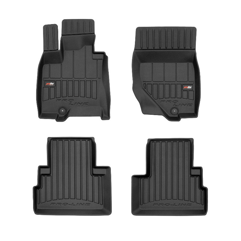 Guminiai ProLine 3D kilimėliai: (aukštos kokybės plastiko, gumos mišinys / TPE, komplektas - 1vnt., juodi, krašto aukštis 7 cm, montavimo būdas - spaustukai). AUTOMOBILIŲ KILIMĖLIAI FROGUM 3D PROLINE LUXURY • Dėl naujoviškos 3D skenavimo technologijos atitinka idealiai; • Kraštai papildomai apsaugoti – aukštis 7 cm, visada švarus automobilis; • Itin patvari medžiaga su unikalia neslystančia struktūra, atspari nešvarumams. • Išskirtinis stabilumas dėl spaustukų – lengvai montuojama spustelėjus; • Pakojo zonos apsauga – komfortas, leidžiantis nuleisti vairuotojo koją; 3D ProLine aukštos kokybės guminiai kilimėliai padeda išlaikyti automobilį švarų. Modernus ir funkcionalus dizainas, ir ypač aukštas kraštas garantuoja efektyvų vandens ir purvo surinkimą ir neleidžia jiems išbėgti. Taip automobilio salonas išlieka švarus. Pagaminti iš aukštos kokybės gumos, kurioje nėra toksiškų komponentų. Bekvapis. Kilimėliai idealiai atitinka ir puikiai priglunda prie salono grindų. Guminiai kilimėliai išlaiko savo elastingumą net esant temperatūros pokyčiams. Specialus paviršius neleidžia kilimėliams slysti vairuojant, o tai daro didelę įtaką saugumui ir kelionės patogumui