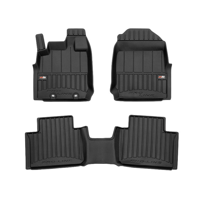 Guminiai Premium 77 kilimėliai: (aukštos kokybės plastiko, gumos mišinys / TPE, komplektas - 4vnt., juodi, krašto aukštis 4 cm, montavimo būdas - spaustukai). AUTOMOBILIŲ KILIMĖLIAI FROGUM 77 PREMIUM • Dėl naujoviškos 3D skenavimo technologijos atitinka idealiai; • Krašto aukštis - 4 cm suteikia didesnę apsaugą nuo nešvarumų • Modernus ir funkcionalus dizainas, išlaikantis nešvarumus kilimėlio viduje • Neslystantys spacialūs spaustukai, lengva montuoti; • Speciali apsauga, leidžianti nuleisti vairuotojo koją; Aukšto lygio apsauga jūsų automobiliui, kilimėliai idealiai atitinka ir puikiai priglunda prie salono grindų. Modernus ir funkcionalus dizainas, bei aukštas kraštas garantuoja efektyvų vandens ir purvo surinkimą ir neleidžia jam nutekėti. Taip automobilio salonas išlieka švarus. Pagaminti iš aukštos kokybės gumos, kurioje nėra toksiškų komponentų. Bekvapis. Kilimėliai turi spaustukus, todėl jį lengva pritvirtinti prie grindų. Guminiai kilimėliai išlaiko savo elastingumą net esant temperatūros pokyčiams. Specialus paviršius neleidžia kilimėliams slysti vairuojant, todėl labai paveikia saugumą ir kelionės komfortą.
