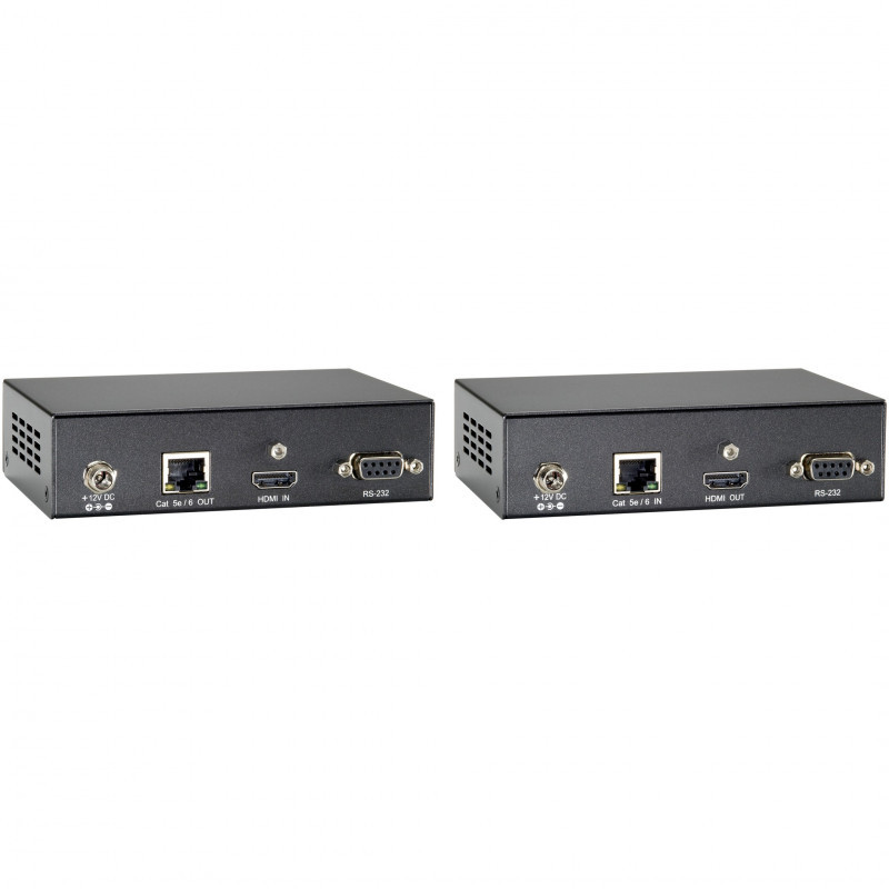 "LevelOne HDMI over Cat.5 Extender Kit, HDBaseT, 100m. Type: AV transmitter & receiver, Maximum resolution: 3840 x 2160 pixels, Cable types supported: Cat5, Cat5e, Cat6. Operating voltage: 12 V, Current: 1 A. Width: 125 mm, Depth: 85 mm, Height: 40 mm. Package dimensions (WxDxH): 300 x 170 x 120 mm, Package width: 300 mm, Package depth: 170 mm. Cables included: AC"\n"The HVE-92 series is a HDMI extension solution supports HDBaseT technology which transmits HDMI signal and multi-channel audio at resolution Ultra HD 4K x 2K (3840 x 2160 @ 30Hz) and 1080p Full HD up to 100m via Cat5e or Cat6 cable.