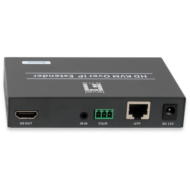 "LevelOne HVE-6701R. Type: AV receiver, Maximum resolution: 1920 x 1080 pixels, Cable types supported: Cat5e, Cat6, Cat7. Connectivity technology: Wired, USB connector type: USB Type-A. Power source type: DC, Operating voltage: 12 V, Power consumption (max): 3.3 W. Width: 119 mm, Depth: 81.7 mm, Height: 23 mm. Quantity per pack: 1 pc(s), Package type: Box"\n"The LevelOne HVE-670 Series is an innovative HDMI-over-IP Distribution Solution. Designed with transmitting units (HVE-6701T) and receiving units (HVE-6701R), it offers scalable digital signage distribution, supporting HDMI 1.3 with 1080p video resolution and simultaneous audio broadcast.