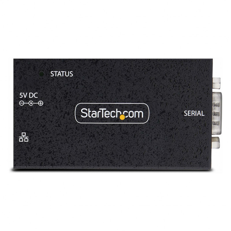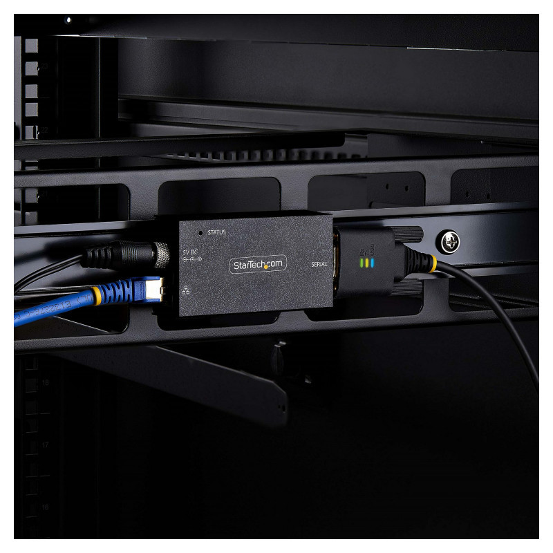 "StarTech.com 1-Port Serial to Ethernet Adapter, IP Serial Device Server For Remote RS232 Devices, Wall/DIN Rail Mountable, Metal Housing, RJ45 LAN to DB9 Serial Converter. Networking standards: IEEE 802.3i, IEEE 802.3u. Width: 82 mm, Depth: 46 mm, Height: 25 mm. Input voltage: 100 - 240 V, Input current: 0.48 A, Output voltage: 5 V. Housing material: Steel. Number of screws included: 4 pc(s)"\n"Streamline RS-232 connectivity for serial device management over IP